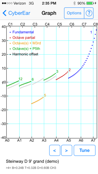 Tuning Graph shows cents and partials for all 88 notes The shape of this graph can indicate the quality of the samples and tuning.