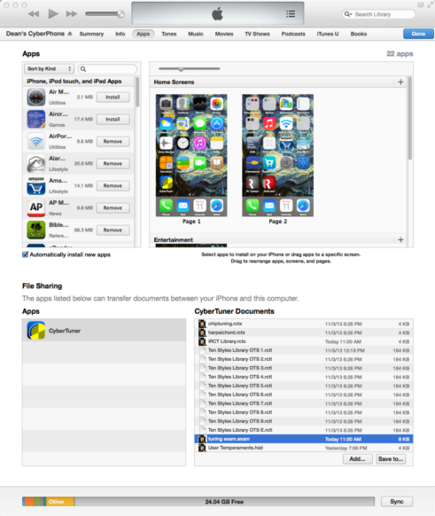iRCT also emails and receives tuning files (to yourself for backup or another iRCT user) using Apple Mail.